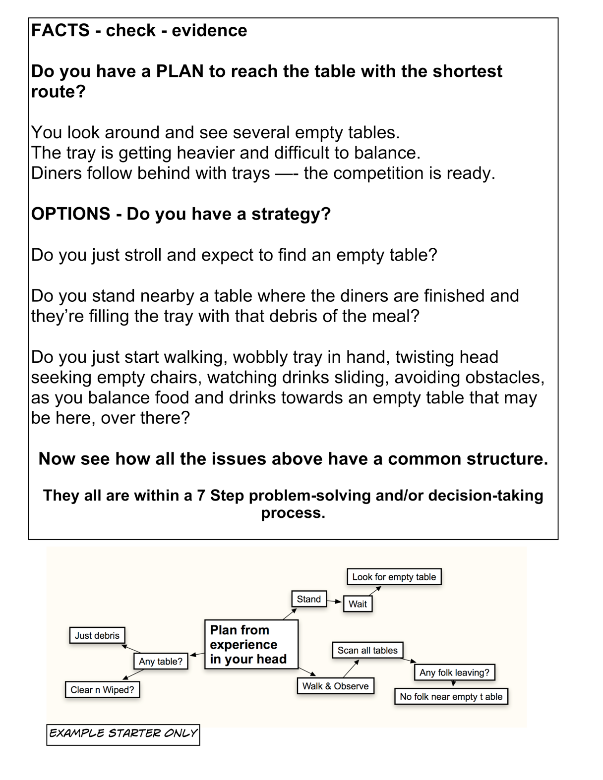 [ R ] Range. Write down the range of many things you’ll need to consider if your problem is to be solved or when your decision is made. Write these as a list or map or diagram.